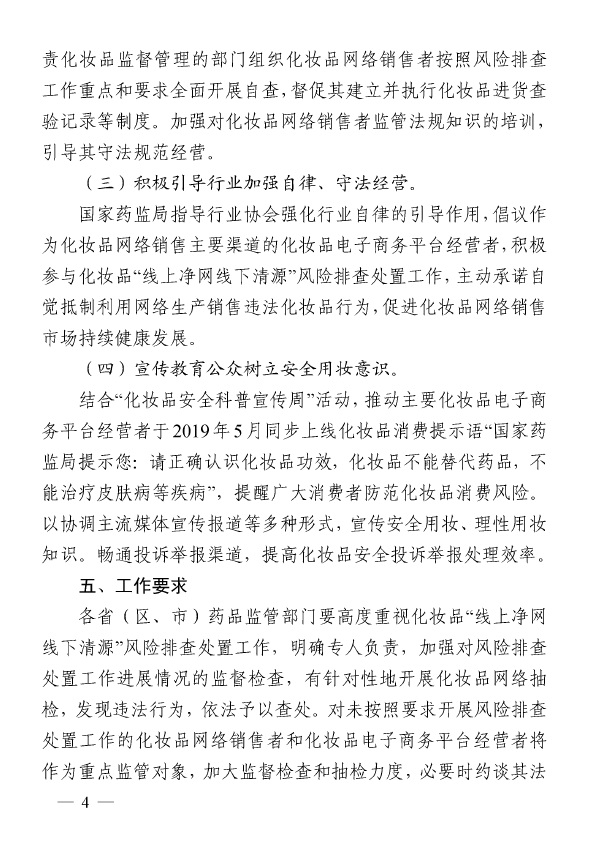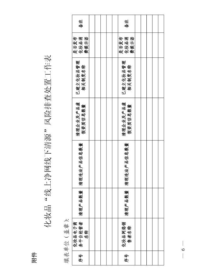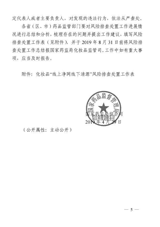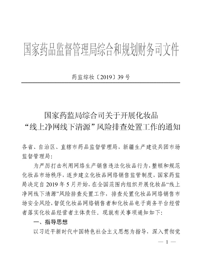 附件:国家药监局综合司关于开展化妆品“线上净网线下清源”风险排查处置工作的通知