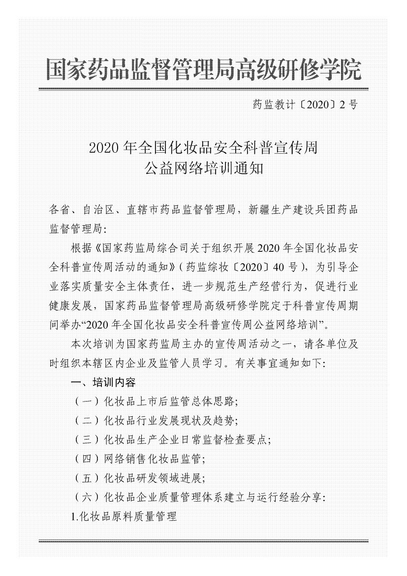 2.2020年全国化妆品安全科普宣传周公益网络培训通知