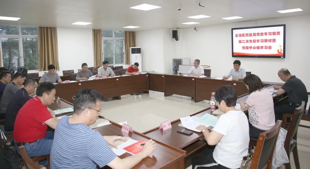 黄琛指出,作为药品监管部门,要始终坚持以习近平新时代中国特色社会主义思想为指导,聚焦习近平总书记视察广西时对我区“四个突出特点”的重要论述和“四个新”的总要求,完整准确全面贯彻新发展理念,学好百年党史,传承红色基因,凝聚奋进力量,守住药品安全底线,加快推动医药产业高质量发展。一要深入学习贯彻习近平总书记关于党的历史的重要论述和视察广西重要讲话精神,持续在学党史、悟思想、办实事、开新局上下功夫,切实把学习成效转化为工作动力和工作成效。二要在学习党史中恪守为民初心,把以人民为中心的思想贯穿药品监管工作始终,把“我为群众办实事”实践活动抓紧抓好抓细抓实,着力解决好人民群众诉求和企业发展堵点、难点,不断增强人民群众在药品安全方面的获得感、幸福感、安全感。三要认真履行监管职责,以贯彻落实《国务院办公厅关于全面加强药品监管能力建设的实施意见》为契机,全面加强药品监管能力建设,持续深化药品医疗器械审评审批改革,加快推动广西医药产业高质量发展。四要继续开展特色鲜明、形式多样的党史学习教育,激励党员干部积极主动向革命先烈和先进典型学习,敢于担当,善于作为,以优异成绩迎接中国共产党建党100周年!