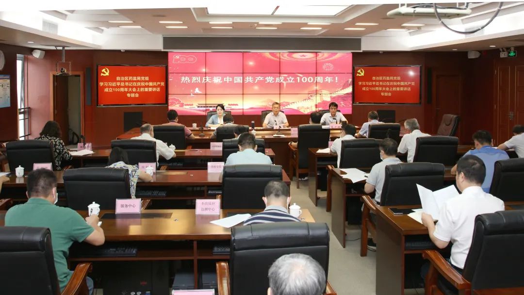 7月1日上午,庆祝中国共产党成立100周年大会结束后,国产a片 迅速召开党组中心组扩大会议,专题学习习近平总书记在大会上的重要讲话精神,强调要把习近平总书记重要讲话精神学习好、宣传好、贯彻好,在全区药品监管部门掀起学习热潮,充分展现新时代新征程中广西药监人的新担当和新作为。局党组书记、局长黄琛主持会议并发言。局党组成员、副局长韦广辉、万秋出席会议。