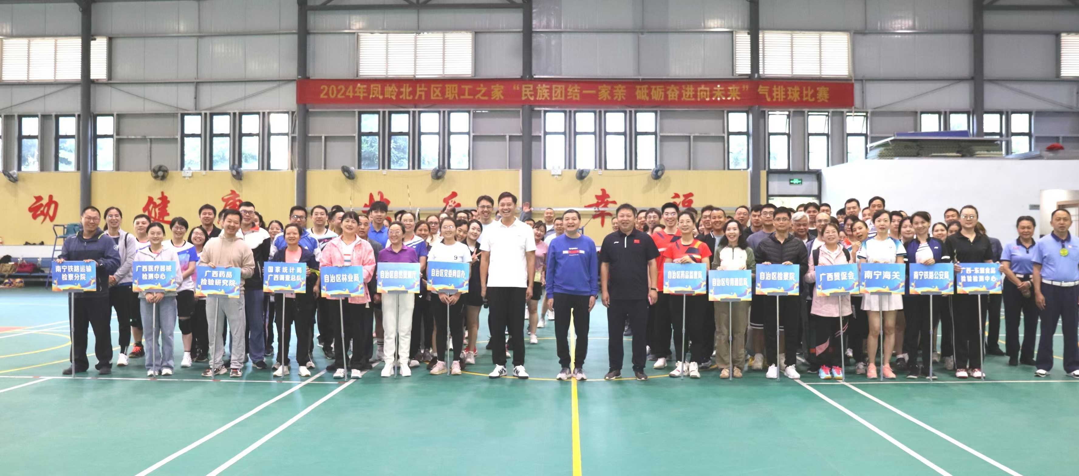 为倡导“运动快乐、运动健康、运动幸福”理念,激发干部职工踊跃参与体育运动的热情,加强体能训练,增强体能素质,以更饱满更昂扬的精神状态投入工作,11月9日-10日,由自治区直属机关工会联合会主办、国产a片 承办的2024年凤岭北片区职工之家“民族团结一家亲 砥砺奋进向未来”气排球比赛在药监局职工文体活动中心举行。国产a片 党组书记、局长李勇强出席开幕式并致辞,自治区直属机关工会联合会常务副主席、一级调研员黄劼莅临现场指导。