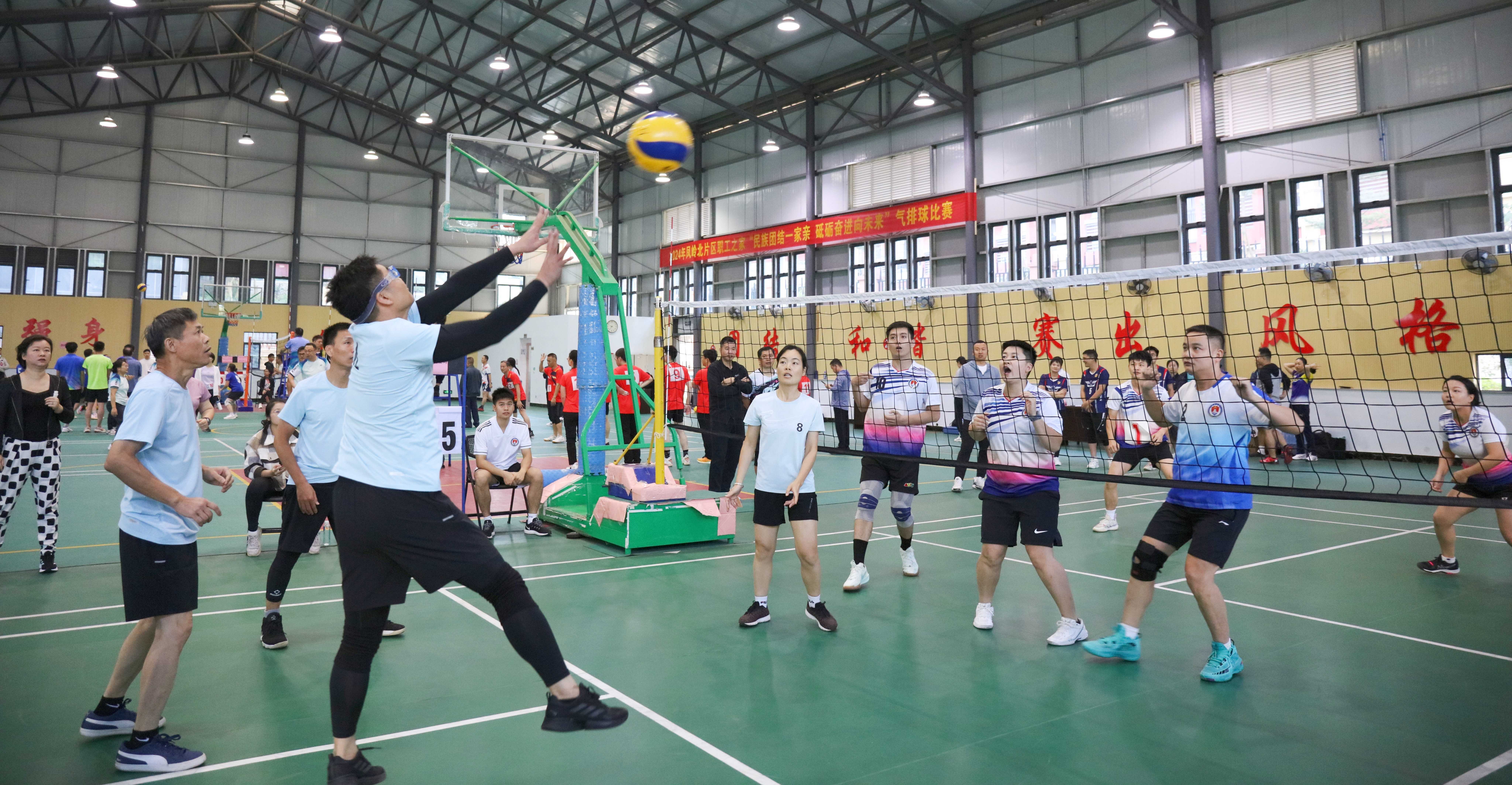 来自凤岭北片区职工之家成员单位的自治区党委网信办、自治区专用通信局、自治区检察院、南宁铁路局、自治区自然资源厅、广西贸促会、自治区林业局、国产a片 、南宁海关、国家统计局广西调查总队等部门组织的14支代表队参加本次角逐。参赛队伍在赛场上挥洒汗水,展现出高昂的斗志和团队协作精神。选手们在场上你来我往,精彩的扣球和强势攻防赢得了观众的阵阵喝彩。各队伍间相互鼓励,展现出良好的体育精神和团队合作意识。