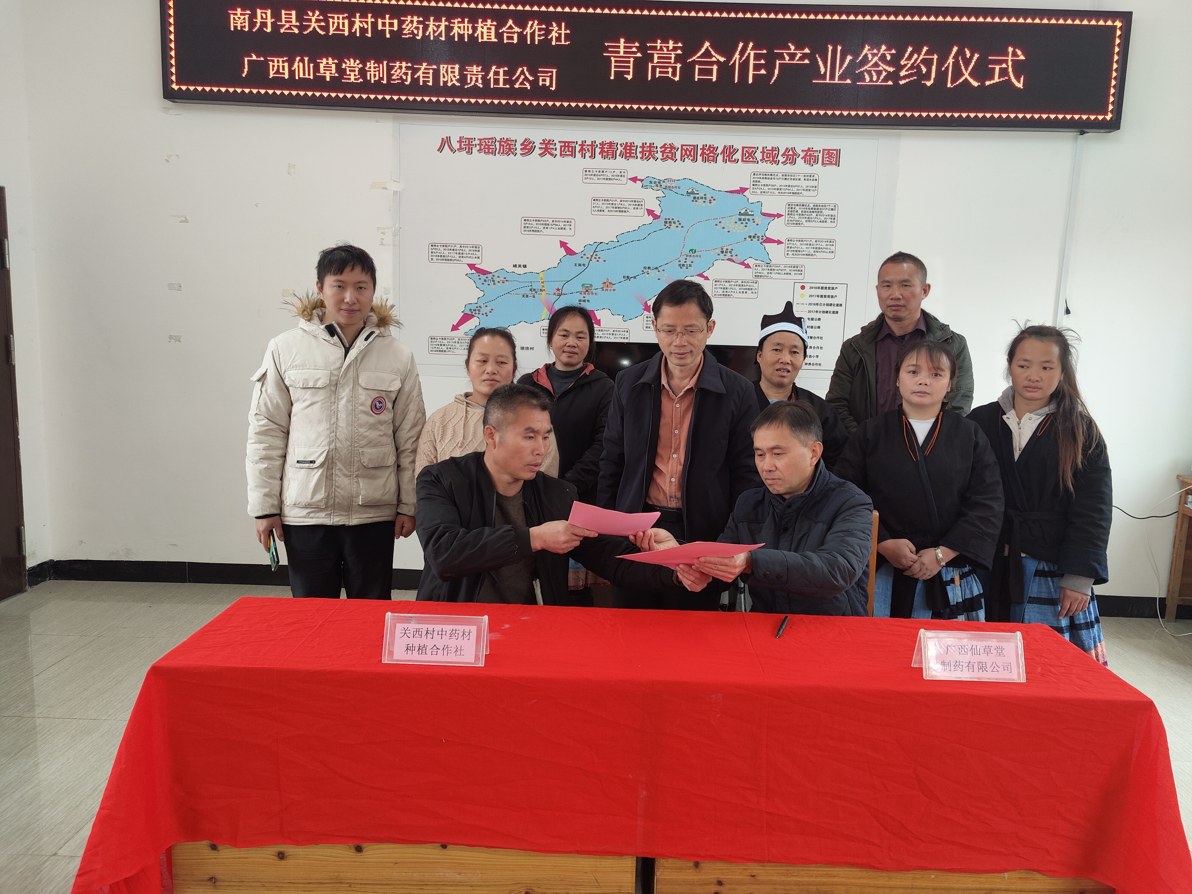 关西村驻村工作队、村两委积极对接广西仙草堂制药有限责任公司,成立关西村中药村种植专业合作社,以“公司+研究中心+合作社+农户”的模式运作,免费向农户提供种子和技术指导,签订保底收购协议,带动广大农户和脱贫户抱团发展,共同走上致富路。