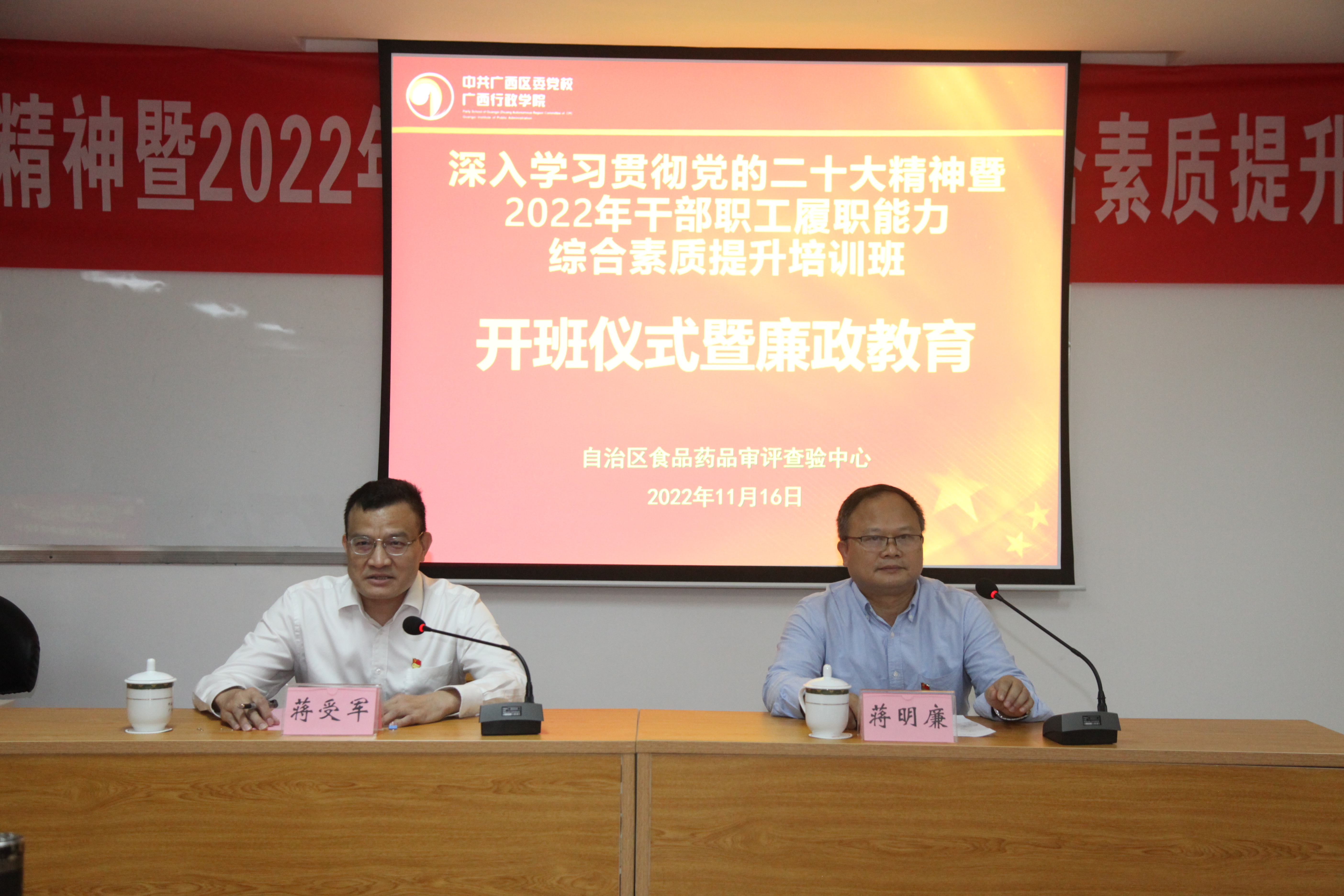 为进一步深入学习贯彻党的二十大精神,为审评查验队伍“充电赋能”,全面提升全体干部职工党性修养、综合素质和履职能力,1116日—1118日,自治区食品药品审评查验中心(以下简称“中心”)在中共广西区委党校(广西行政学院)举办“深入学习贯彻党的二十大精神暨2022年干部职工履职能力综合素质提升培训班”。