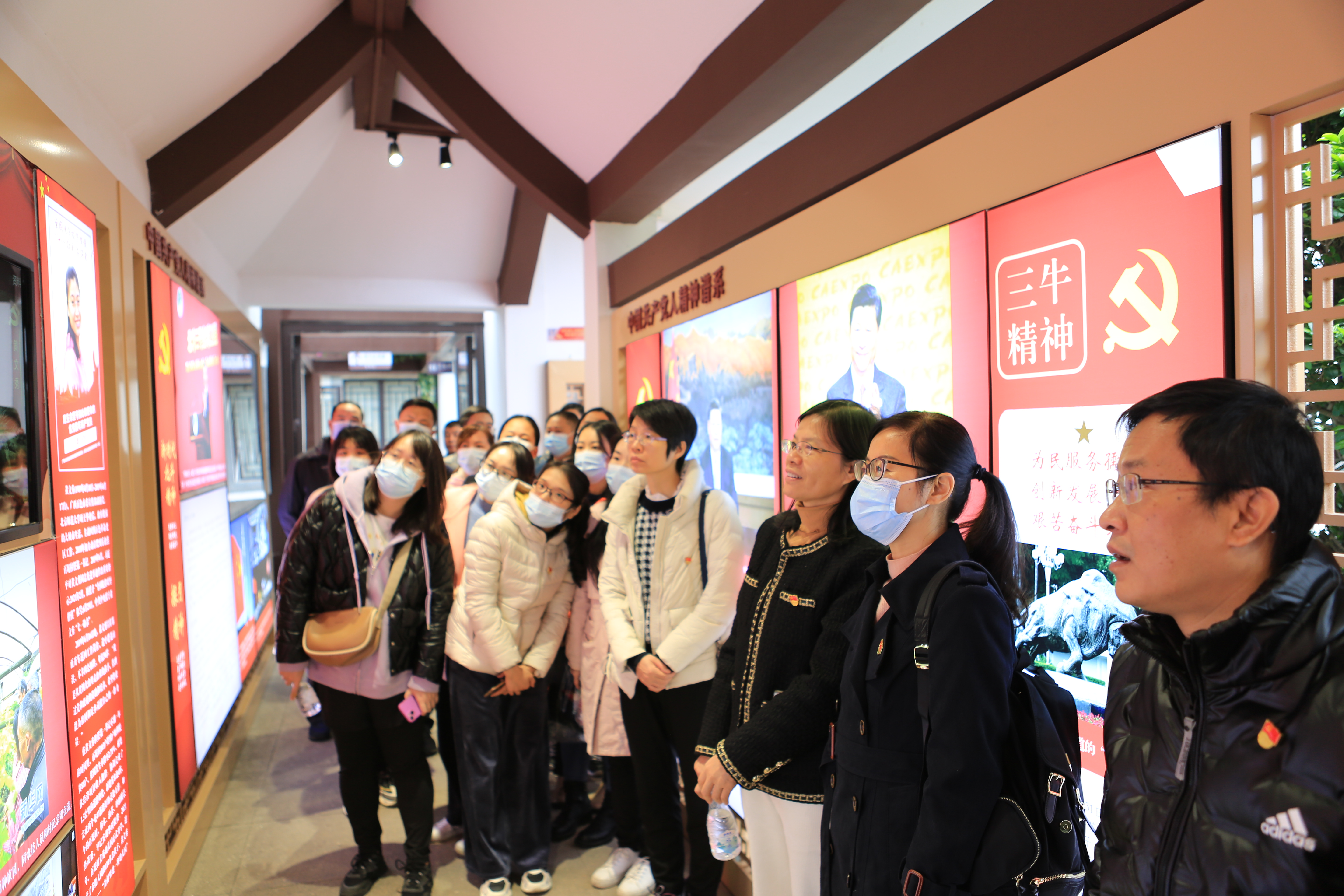 活动中,大家跟随讲解员参观了中国共产党人精神谱系主题园的“两厅一廊一馆”。同志们步入以时间为轴的主题园,通过互动点播、360度全息投影、虚拟翻书系统等电子信息化设备,多维度、多视角沉浸式感受中国共产党人的精神谱系。走在主题园中,同志们在红船精神、延安精神中读懂新民主主义革命时期,中国共产党人接续奋斗的精神密码;在红旗渠精神、焦裕禄精神中领悟社会主义革命和建设时期的砥砺奋进;在改革开放精神、抗洪精神中感受改革开放和社会主义现代化建设新时期的团结伟力;在脱贫攻坚精神、载人航天精神、新时代北斗精神、抗疫精神中感受中国特色社会主义新时代的伟大成就。同志们在参观过程中,汲取百年党史中形成的优良传统和精神力量,学习党的二十大精神,激发永远跟党走、奋进新征程的内生动力。