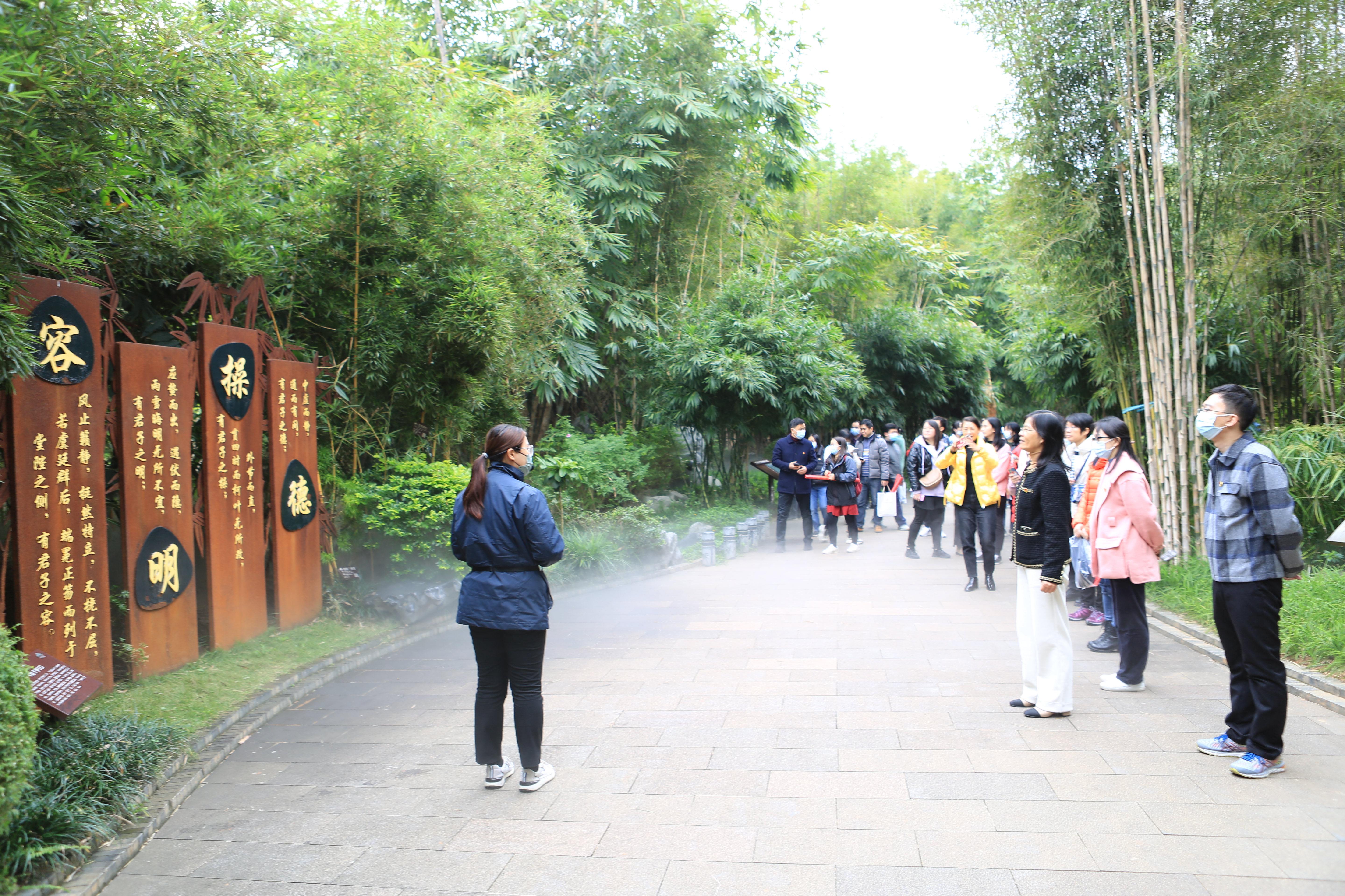 随后,同志们参观了青秀山廉洁文化主题园——竹园。竹园以竹寄情,将竹子本固、性直、心空、节贞的自然属性,融合在廉洁文化中,“竹”与“廉”两者相得益彰,相辅相成。徜徉竹园,同志们不止欣赏了竹园的清静幽雅,更在名人典故雕塑、石刻墙绘、廉政楹联以及竹廉文化展示馆中颂竹、品竹、听竹、知竹。王阳明的《君子亭记》、广西郁林太守陆绩的“压船廉石”、王守仁的“兴办书院,教化于民”等,一个个勤政廉政故事,更让同志们在半山半水半竹林中,领悟先贤的清新脱俗与正直不屈的高尚节操。