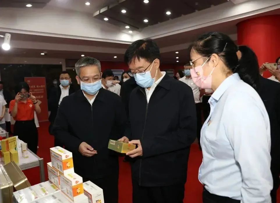 活动结束后,苗庆旺参观了广西医药产业创新发展成效宣传展台,通过药品、医疗器械、化妆品名特优产品的展示,反映广西医药企业的科技创新成就。