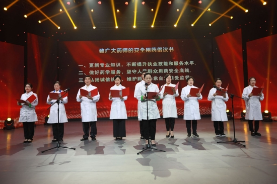 启动仪式上,中国工程院院士、中国食品药品检定研究院学术委员会主任委员、生物制品检定首席专家王军志以视频连线的方式阐述了对“安全用药 同心同行”主题的深刻理解,提出了做好药品安全科普宣传工作的要求。获得第三届全国“身边最美药师”的广西大参林连锁药店有限公司河池罗城龙岸分店执业药师蒙焕香及9位医师代表在仪式现场宣读安全用药倡议书,增强公众安全用药意识。