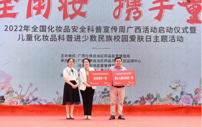 启动仪式上,来自化妆品行业的企业代表宣读了诚信经营承诺书,并向瑶山孩子们捐赠了一批儿童化妆品和运动器材。孩子们表演了具有瑶族风情的文艺节目。现场还举行了儿童化妆品安全科普展、有奖竞答以及科普义诊等活动。