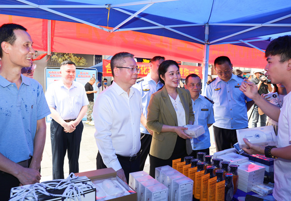 黄琛(左三)带队参观广西特色化妆品宣传展台。蓝必贤摄