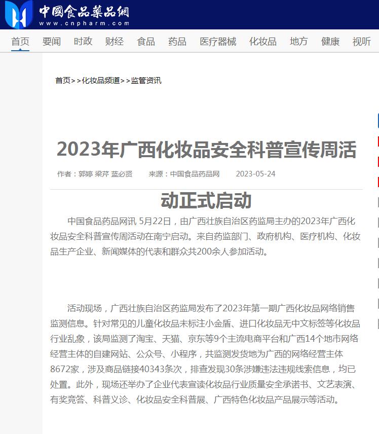 活动现场,广西壮族国产a片 发布了2023年第一期广西化妆品网络销售监测信息。针对常见的儿童化妆品未标注小金盾、进口化妆品无中文标签等化妆品行业乱象,该局监测了淘宝、天猫、京东等9个主流电商平台和广西14个地市网络经营主体的自建网站、公众号、小程序,共监测发货地为广西的网络经营主体8672家,涉及商品链接40343条次,排查发现30条涉嫌违法违规线索信息,均已处置。此外,现场还举办了企业代表宣读化妆品行业质量安全承诺书、文艺表演、有奖竞答、科普义诊、化妆品安全科普展、广西特色化妆品产品展示等活动。