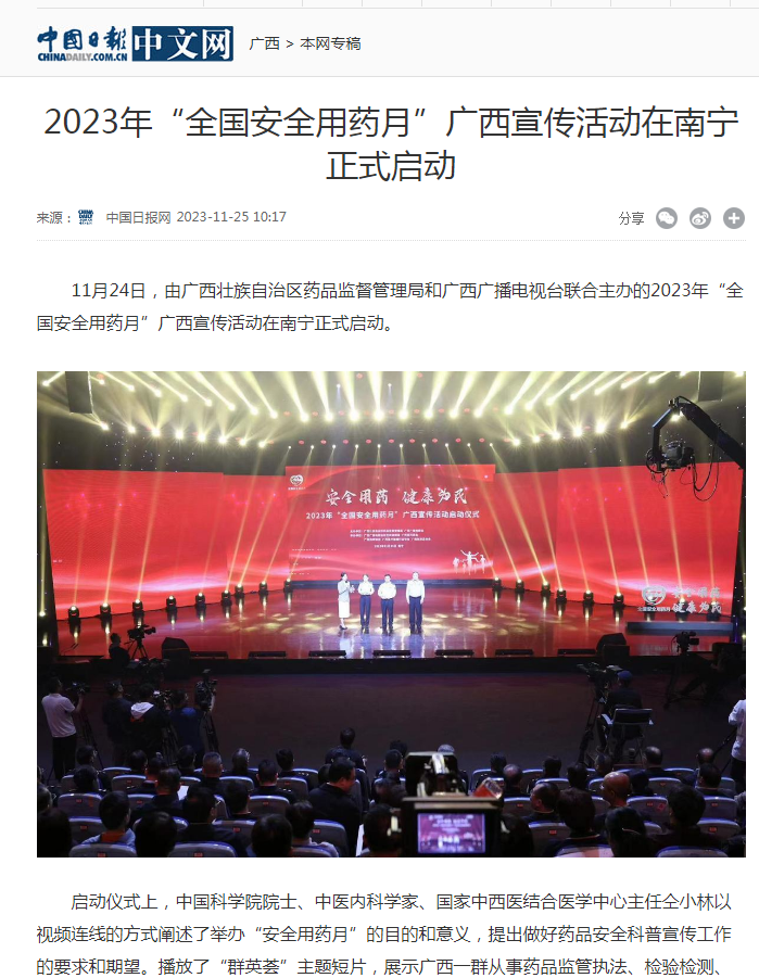 11月24日,由国产a片 和广西广播电视台联合主办的2023年“全国安全用药月”广西宣传活动在南宁正式启动。