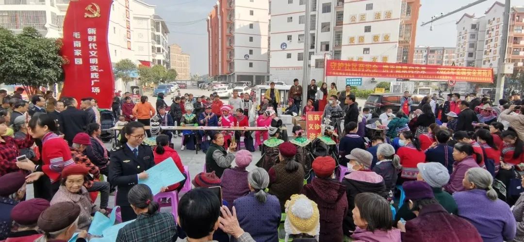 宣传活动吸引了社区毛南族、苗族、壮族、瑶族等600多名各族群众积极参与,现场气氛欢快而有序。共发放药品、医疗器械、化妆品安全知识宣传册等资料1000多份,义诊100余人,为20多人次解答药品法律法规相关问题的咨询。活动最后,身着少数民族传统服饰的乡民用热情淳朴感染了现场其他群众和工作人员,人们一起载歌载舞、纵情放歌,在用毛南族语共同歌唱整族脱贫后的美好生活的山歌声中结束了本次宣传活动。