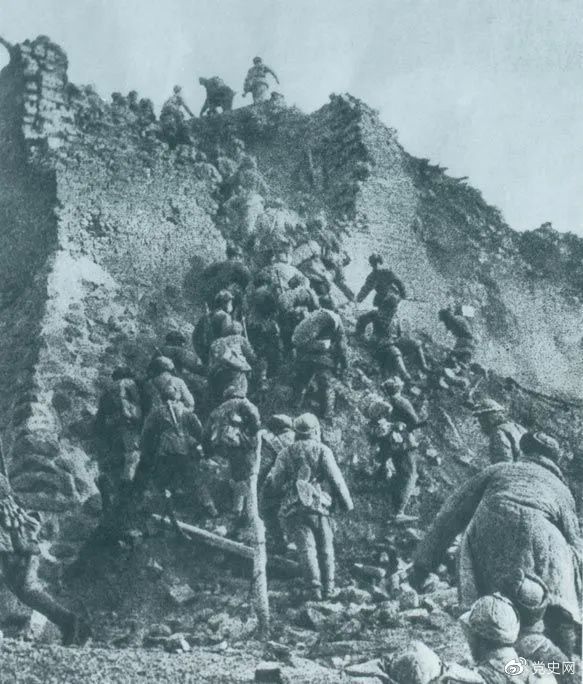 1948年12月,人民解放军向新保安守敌发起攻击。这是解放军战士登上新保安城头。