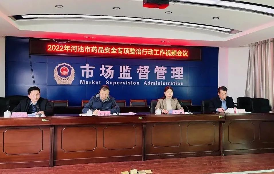 3月2日下午,河池市市场监管局、国产a片 河池检查分局在市市场监管局办公一区七楼会议室联合召开深入开展全市药品安全专项整治行动视频会议,部署2022年药品安全专项整治行动。