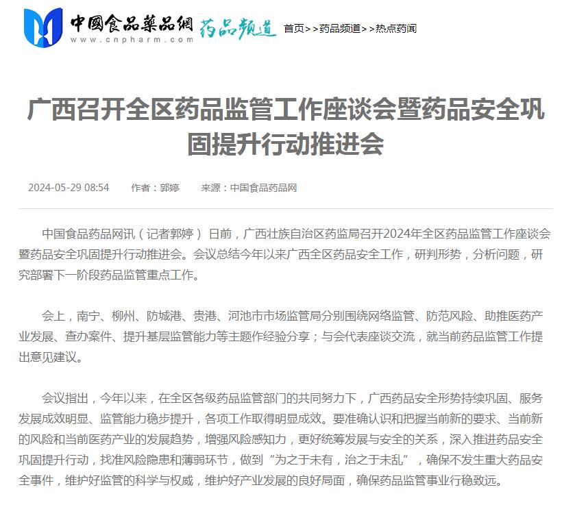 会议指出,今年以来,在全区各级药品监管部门的共同努力下,广西药品安全形势持续巩固、服务发展成效明显、监管能力稳步提升,各项工作取得明显成效。要准确认识和把握当前新的要求、当前新的风险和当前医药产业的发展趋势,增强风险感知力,更好统筹发展与安全的关系,深入推进药品安全巩固提升行动,找准风险隐患和薄弱环节,做到“为之于未有,治之于未乱”,确保不发生重大药品安全事件,维护好监管的科学与权威,维护好产业发展的良好局面,确保药品监管事业行稳致远。