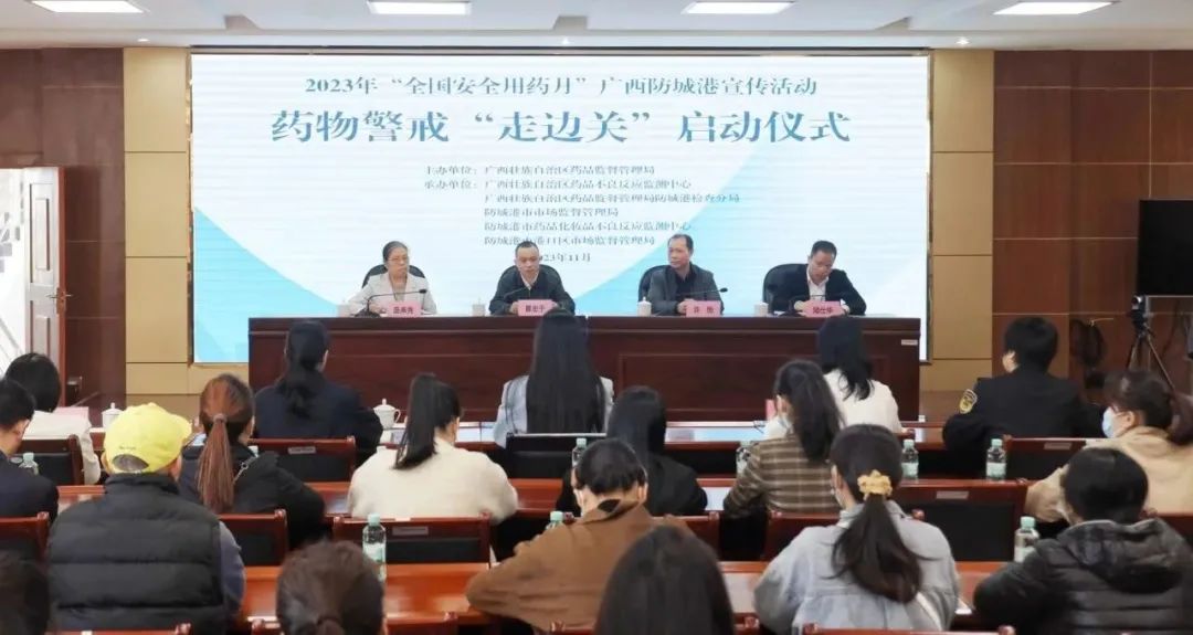 广西药监局办公室、自治区药品不良反应监测中心、防城港市市场监管局、防城港检查分局负责同志,防城港市药品化妆品不良反应监测中心、防城港市港口区市场监管局负责同志和工作人员,以及医疗机构医师、药师代表约100人参加活动。